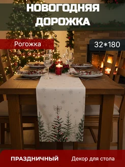 Скатерть тканевая дорожка на стол 32x180 Новогодний декор