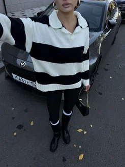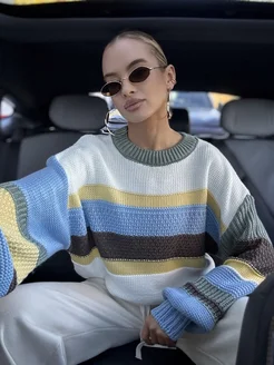 Свитер вязаный с длинным рукавом оверсайз теплый в полоску