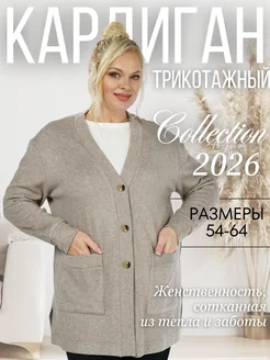 Кардиган теплый трикотажный вязаный удлиненный на пуговицах