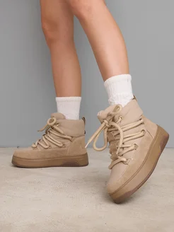 Угги ботинки с мехом на шнуровке