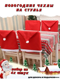 Новогодние чехлы на стулья со спинкой колпак для декора 4 шт