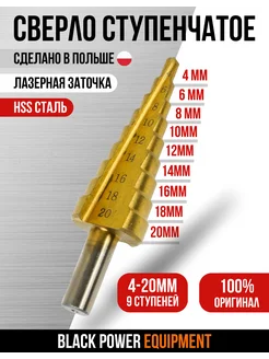 Сверло ступенчатое коническое HSS, 4–20 мм