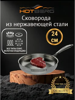 Сковорода нержавеющая сталь 24 см для индукции без покрытия