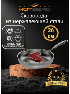Сковорода нержавеющей стали 26 см без покрытия для всех плит