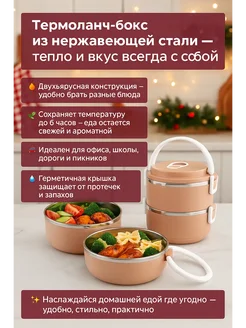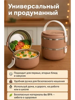 Ланч-бокс термос из нержавеющей стали для еды, 2 яруса