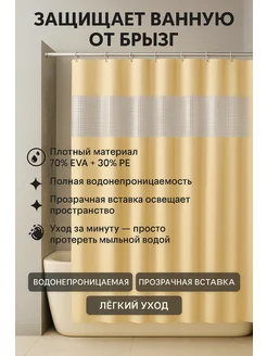 Штора для ванной водонепроницаемая прочная 180×200 занавеска
