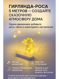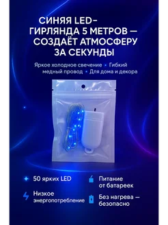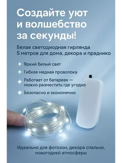 Гирлянда на батарейках, светодиодная лента для декора белая