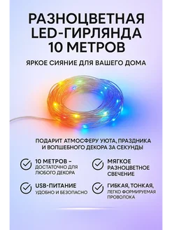 Гирлянда на батарейках, светодиодная лента разноцветная 10м