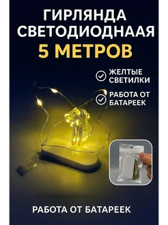Гирлянда на батарейках, светодиодная лента для декора желтая