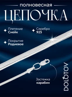 Цепочка из серебра 925 проба плетение Снейк плоский
