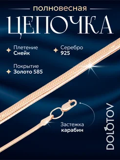 Позолоченная цепочка из серебра 925 проба Снейк плоский