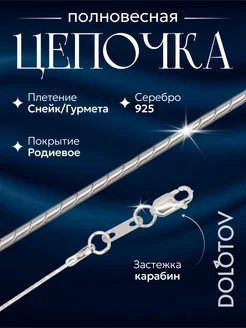 Цепочка серебряная 925 проба плетение Снейк Гурмета