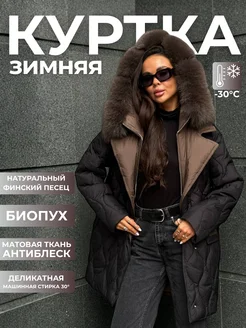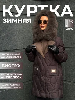 Куртка пуховик удлиненная с мехом песца