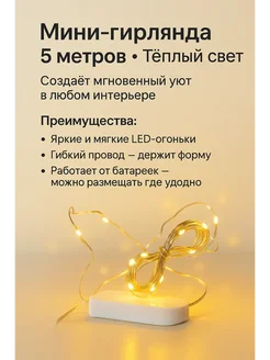 Новогодняя гирлянда на батарейках 5м