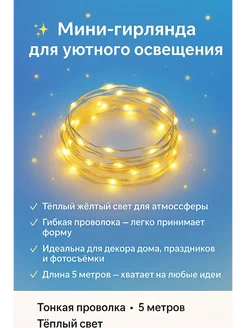 Мини-гирлянда на батарейках 5 метров желтый цвет