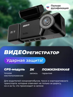 Видеорегистратор для автомобиля с камерами 4К с WI-FI и GPS