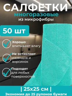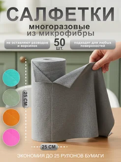 Салфетки из микрофибры многоразовые в рулоне 50 шт