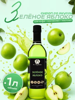 Сироп для кофе и напитков без сахара Зеленое яблоко 1 литр