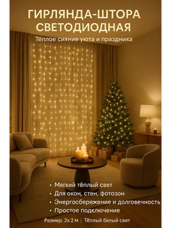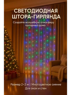 Гирлянда интерьерная новогодняя штора на окно 2х2