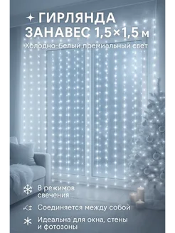Гирлянда штора роса 1.5х1.5 на окно водопад белая