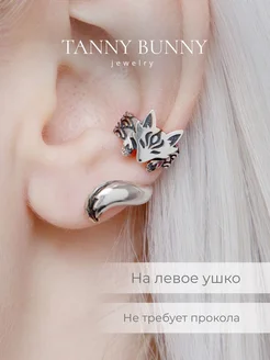 Кафф Кицунэ из серебра 925 пробы с чернением - Левое ухо