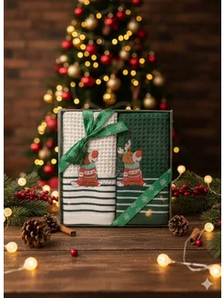 Набор премиальных полотенец 2 шт новогодних кухонных подарок