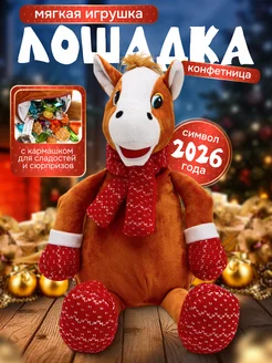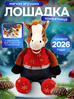 Мягкая игрушка конфетница лошадка 45 см рюкзак