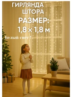 гирлянда штора занавеска белый на окно 1.8х1.8м