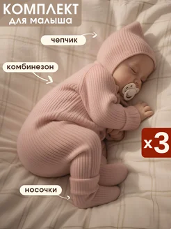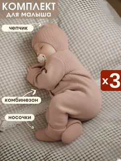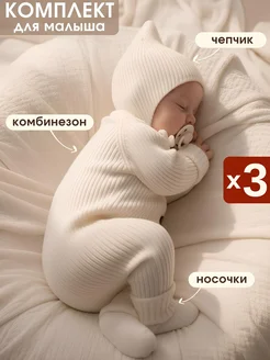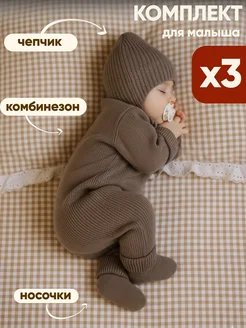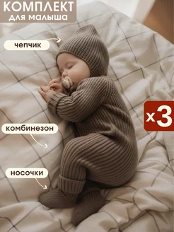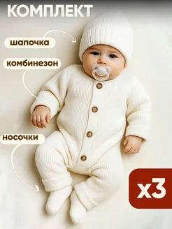 Вязаный комбинезон для новорожденных комплект на выписку