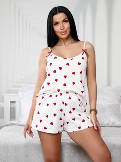 Пижама с шортами и майкой на бретелях костюм домашний