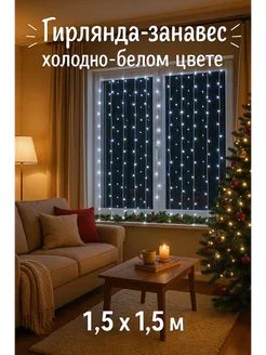 Гирлянда занавес холодно белый 1.5×1.5 м
