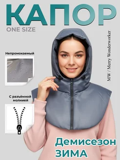 Капор зимний, утеплённый, съемный капюшон, манишка