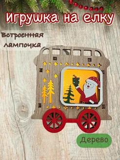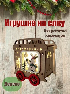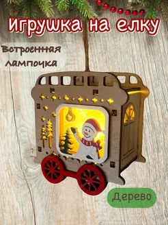 Игрушка на елку деревянный вагончик