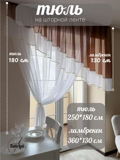 Тюль короткий для кухни с ламбрекеном