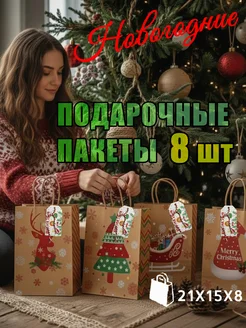 Подарочные пакеты новогодние 8 шт из крафт бумаги