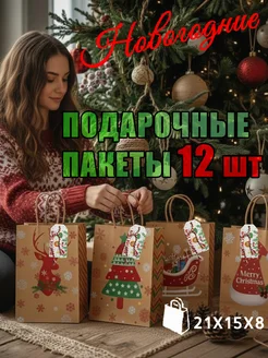 Подарочные пакеты новогодние 12 шт из крафт бумаги