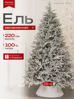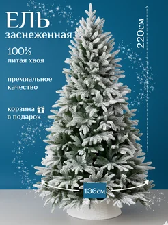 Елка искусственная заснеженная, литая 220 см с гирляндой