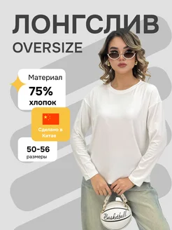 Лонгслив оверсайз белый хлопковый с длинным рукавом