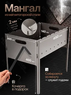 Мангал для шашлыка, барбекю разборный, складной 2 мм