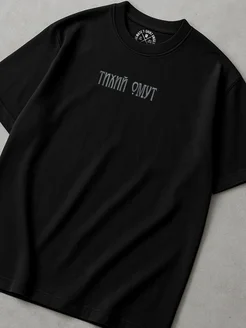 Футболка черная с вышивкой, Тихий омут