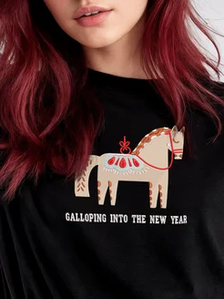 Футболка праздничная с лошадью, вышивка, Новый год