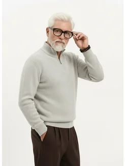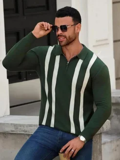 Свитер поло вязаный тонкий на молнии