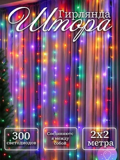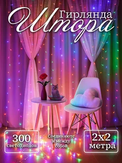 Гирлянда занавес дождик 2х2 штора на окно цветная