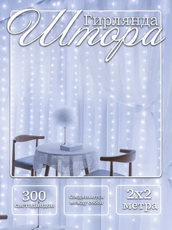 Гирлянда штора занавес 2х2 на окно дождик белая холодный