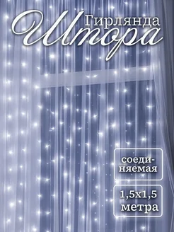 Гирлянда занавеска 1,5х1,5 штора на окно белая