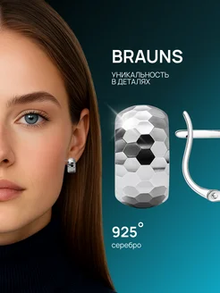 Серьги серебряные 925 пробы ювелирные алмазка ступенька