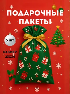 Новогодние подарочные пакеты 5 шт. Длина 23 см. Высота 34 см