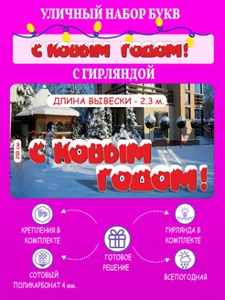 Набор букв с гирляндой С Новым Годом! Уличная открытка 2.3 м
