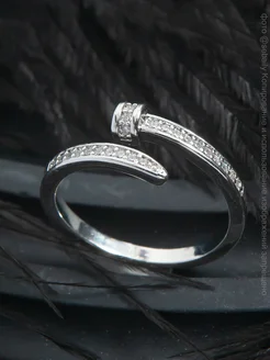 Кольцо гвоздь Картье со стразами серебристое y2k