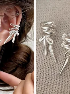 Каффы серебристые матовые с бантиком 2 шт. без прокола